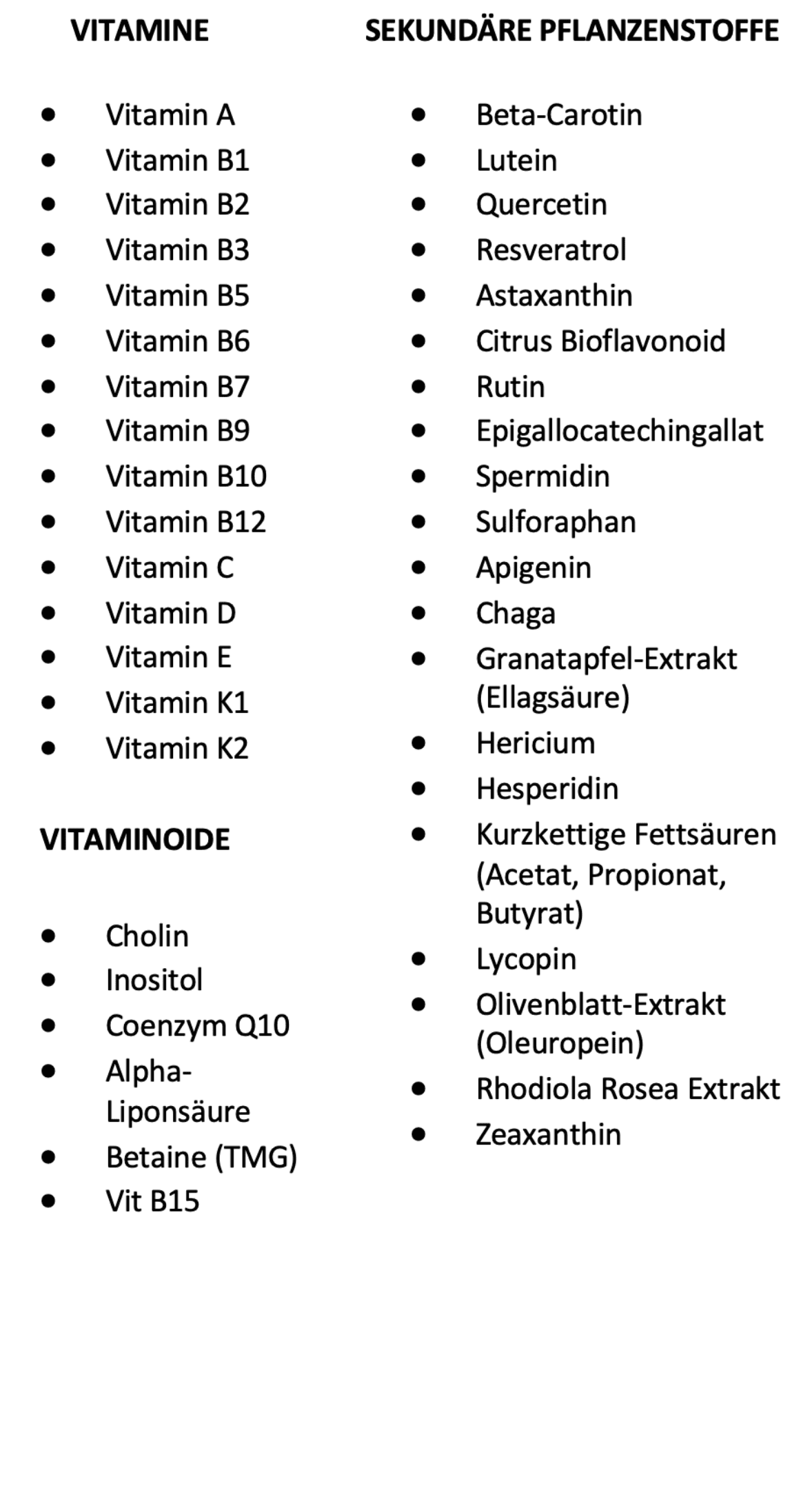 auch die Mikronährstoffe (Vitamine, Mineralstoffe, Amino- und